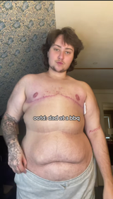 How do people like this post their bodies online? How does one even achieve this body shape? How does having this shape suddenly make them feel ok with doing drag when they actually look like a bearded woman no tits? What has the world come to? A real man would not post this online unless it was a gym progress pic1.