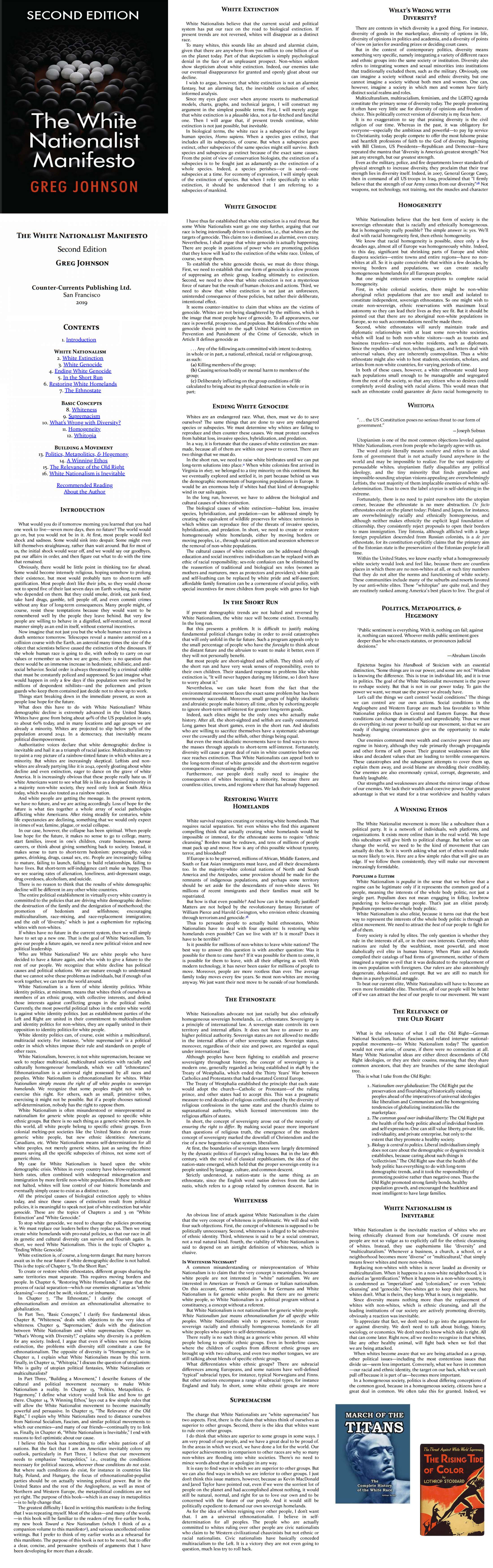 Om the other hand, I think the average White person on the street also has some valid racial grievances with things like the African-American violent crime rate if we’re talking of the U.S., this being downplayed in media and education compared to rarer instances of the other way around (a White attacking or killing a Black), and their own country’s elites throwing them under the bus with mass migration from poorer and browner countries, essentially totally transforming their culture and nation; + the similar case in Western Europe + the Anglosphere with mass migration and White Guilt Identity Politics.