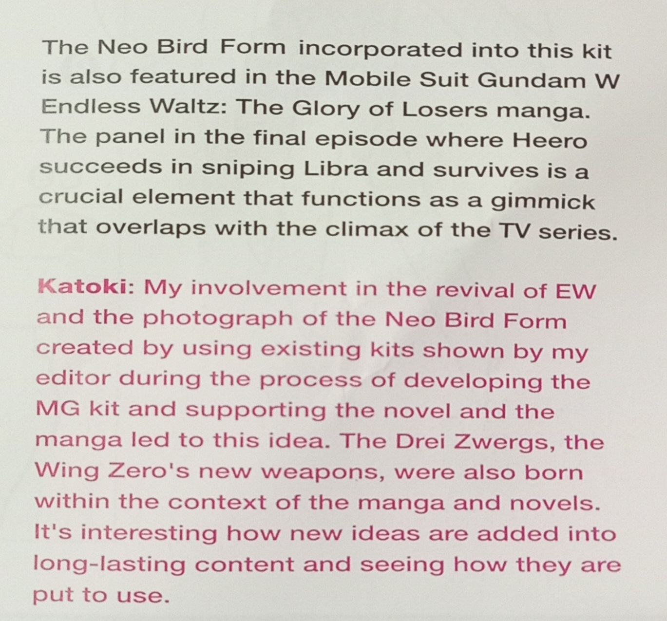Needs a 1.5 with the Neo Bird transformation gimmick since it still shares parts with the fully transformable Wing EW. Don't care if it will be P-Bandai or Gundam Base, just let them do it!