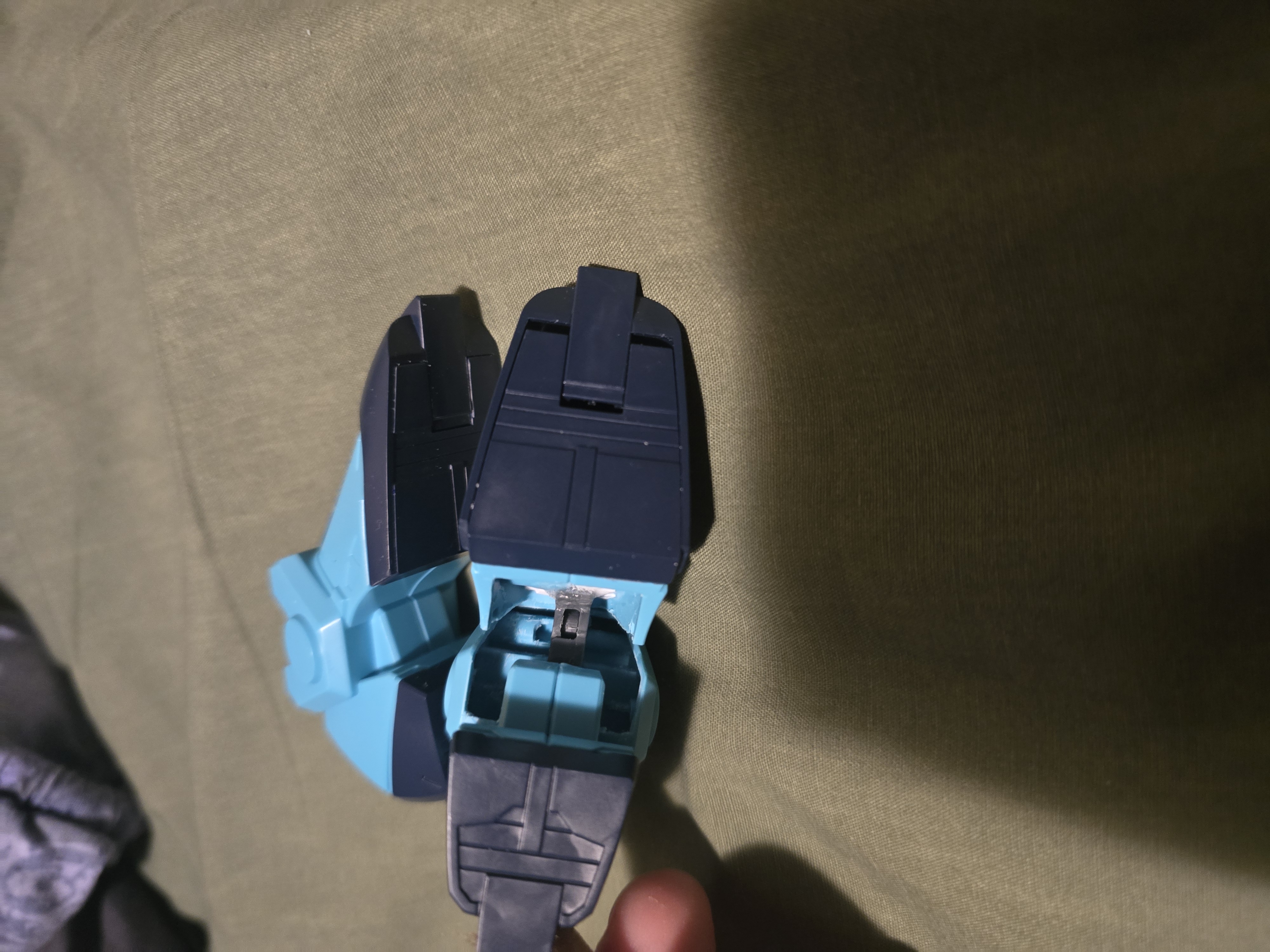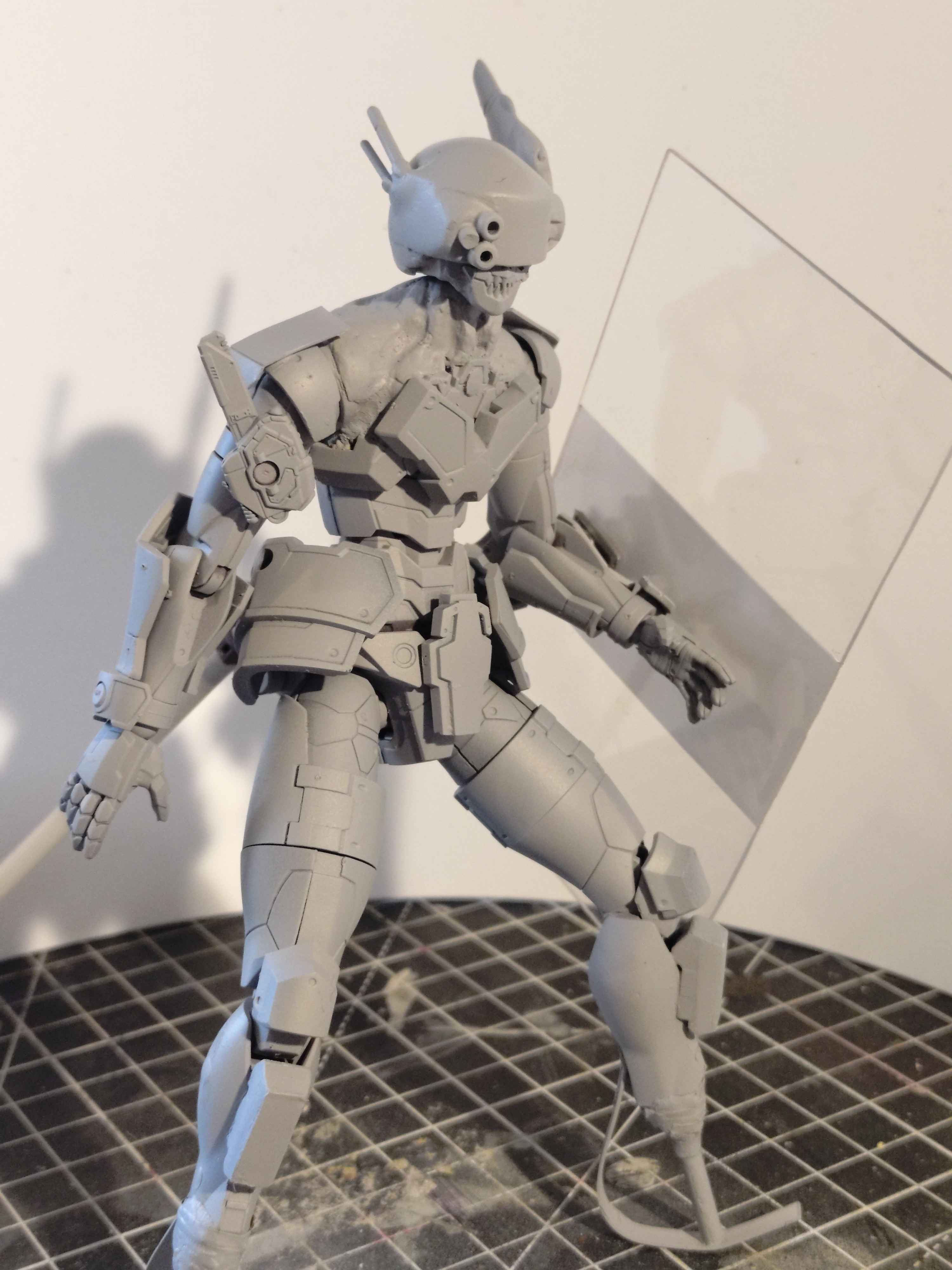 Cut like 5mm out of the shin and want to keep the armour removable and cut out the chest intake vent to replace with styrene sheet. Not sure what my plan is yet for the kneepads (shouldn't be too hard) and head