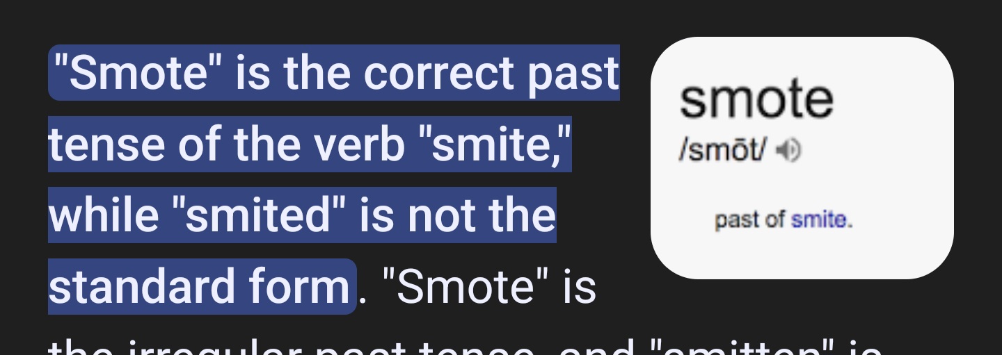 Isn't smitten more like an adjective rather than a past tense verb? Like I am smitten by thighs anon