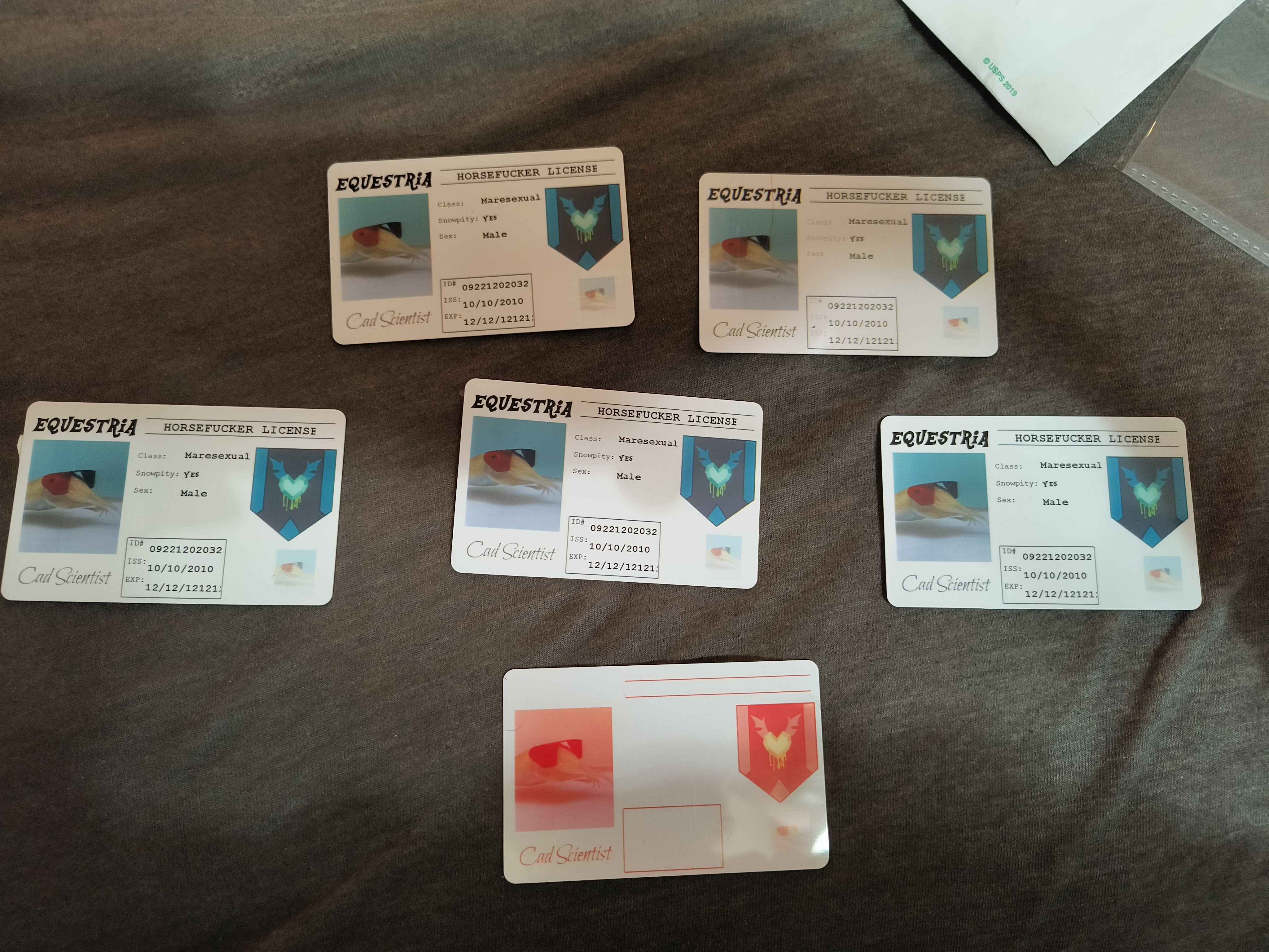 I can't get around to taking a nice picture, but the not-foldable wallet I've got from wallet anon a year ago or is it two already? holds up rather well. Cutie mark of moonbutt is intact, material has a bit of wear on the edges, the "compartment design" itself is pretty okay but I wish it had a velcroed pocket for coins. Might be able to mod this with superglue. Speaking of glue, cards in first two top spots sometimes get stuck inside, but usually I can still pull them out. Usually.