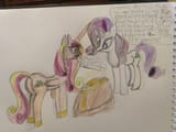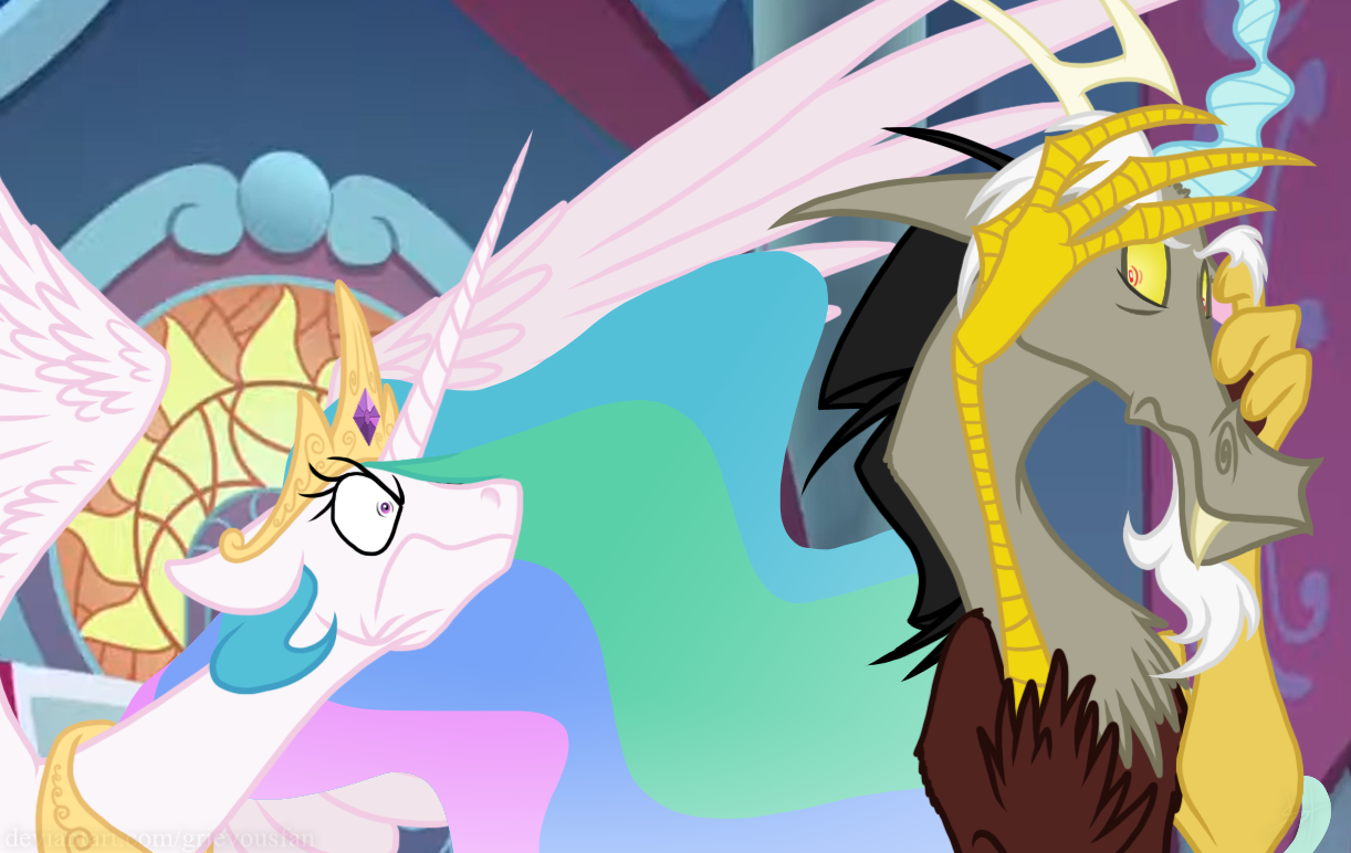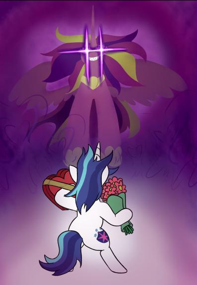 >"The Princess of Love herself. My, what a beautiful little foal you have! What a nice family... When's it my turn, Cadance? You're the Princess of Love. You decide these things, do you not? Can't you whip up a spell? You have a high quality stallion. Where is my high quality stallion? We were both cheerleaders, Cadance. We both put in the effort. How come you get the colt and I got zilch? What do I have to do, Cadance? Tell me. Don't give me that 'the perfect stallion will come along when you least expect it' bullshit either. It's already been so long that I've stopped expecting it! Is it all about looks, Princess? Is that all stallions care about? Am I not pretty enough? Or is it that I don't put out on a first date? You were a whore, weren't you. That's the only explanation for it. You let that disgusting piggish stallion of yours rut you silly, didn't you? Fucking slut! I should've known better than to trust you, the horn growing out of your head says it all! Horrid whorish mutant."