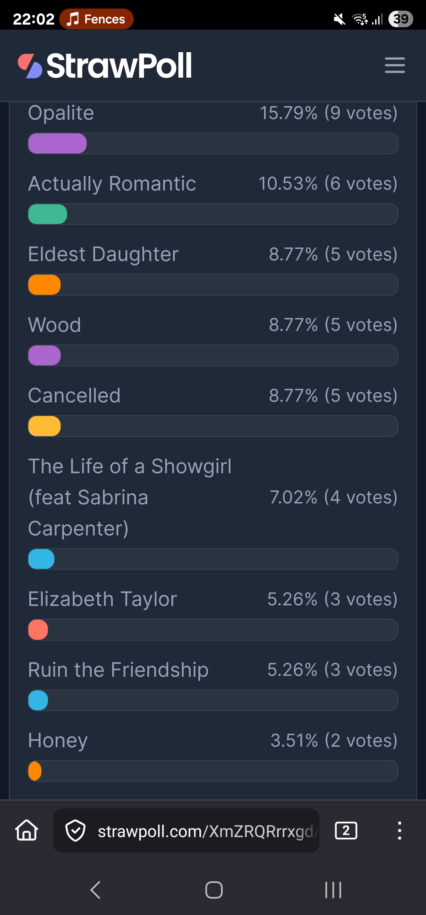 I voted honey, I'm so sad.