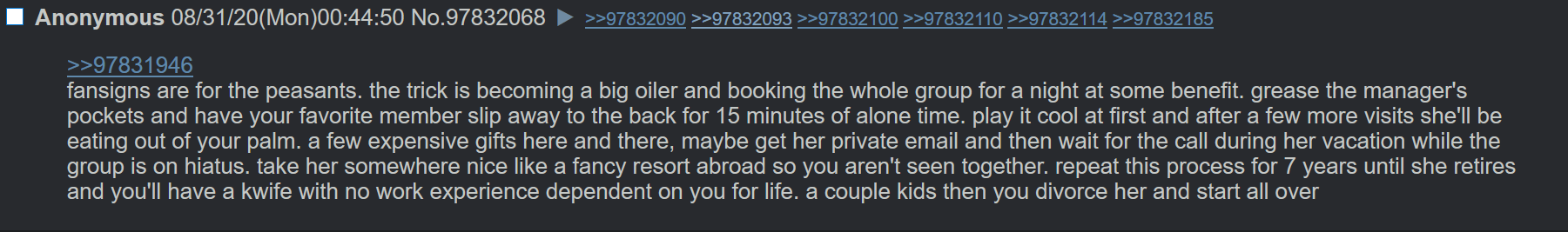 I only actually post about half the stuff I type out. I think better of posting some really psychotic stuff about these girls I don't know