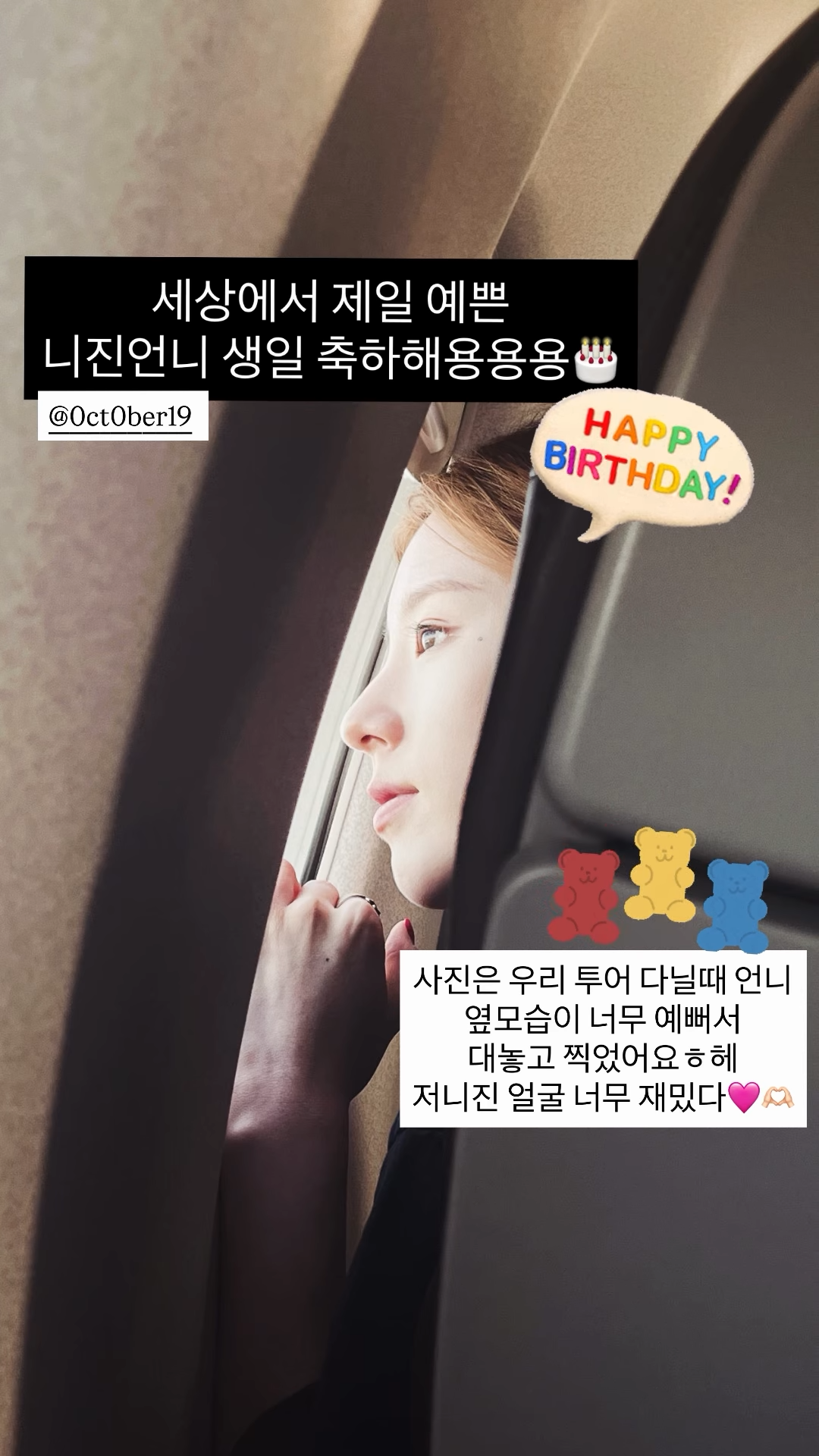 I took this picture during our tour because your side profile was so pretty haha. Jonijinβs face is so cuteβ