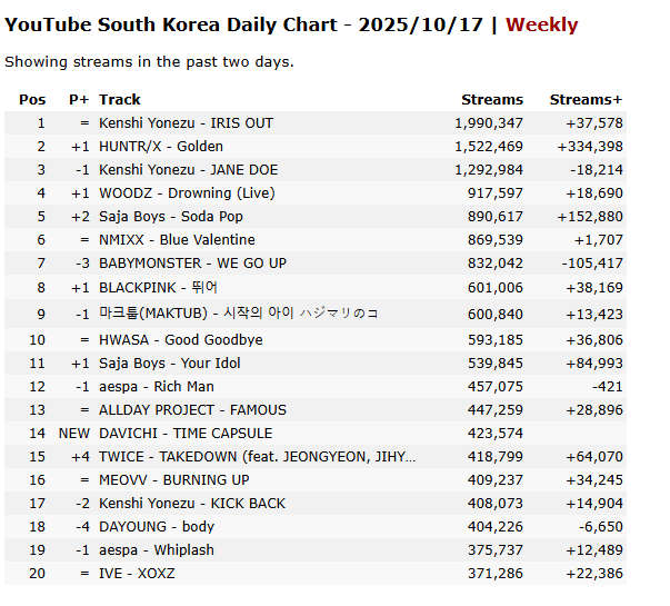 Close to a R(P)AK, or at least #2 on all charts including Melon, Bugs, Flo, Genie, YT Music