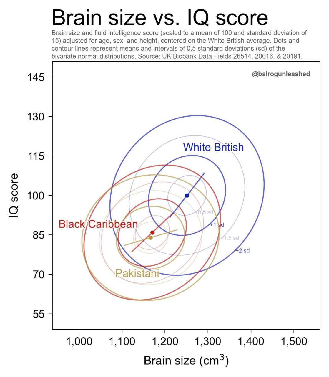 What's interesting about this graph is that it suggests that there's an optimal brain size and that you get dumber when it gets bigger.