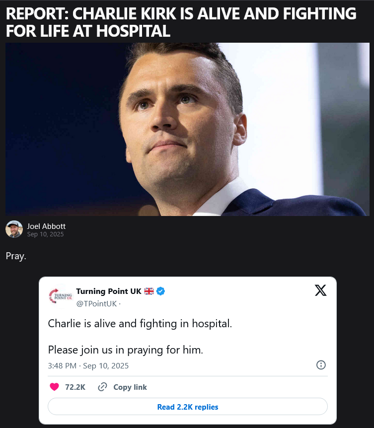 Charlie Kirk has died as a result of his injuries sustained today at Utah Valley University, aged 31.