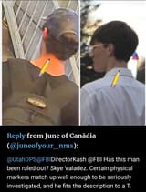 An anon said before they saw a Skylar Valdez in records (criminal records?) appear for the city of Orem. He had trouble locating them in high school records though to connect with Skye Valadez.