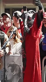 Lol just saw this yesterday. Some fag dressed as baphomet tried to curse him with a song