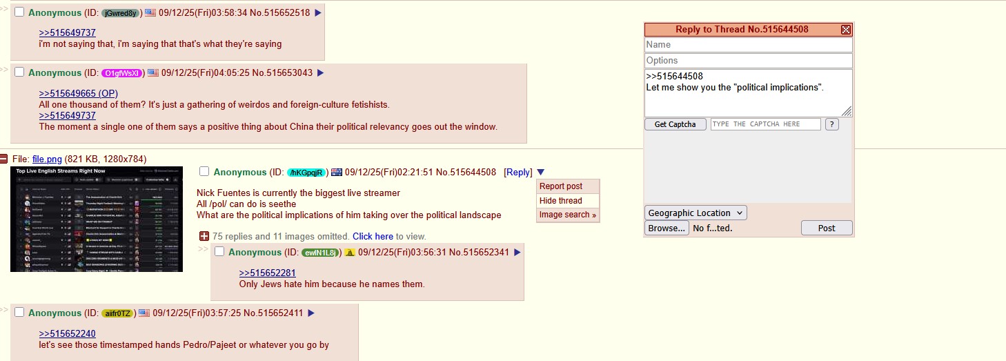 Nick Fuentes is currently the biggest live streamer
