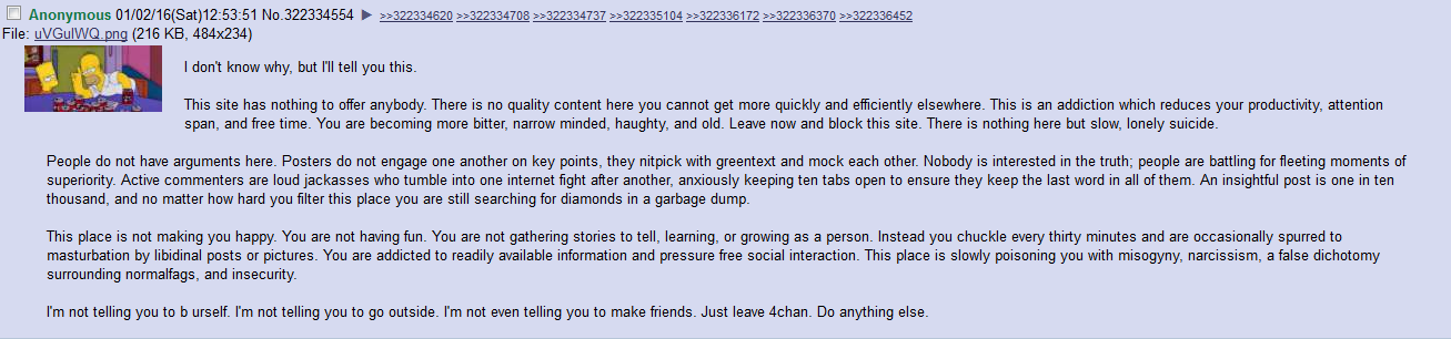 And in that time, I have watched the average online discussion gradually degrade from intelligent mostly friendly discussion and passion communities to a bunch of low IQ knuckleheads, schizophrenics and drama whores constantly jostling to out alpha one another with spiteful takes that are less about seeking answers than they are about exposing and attacking others weaknesses. And the simplicity and apathy of online discourse has rapidly inflated too. The only parts of the internet that still resemble how it used to be are completely infested and controlled by the transgender cult, in which you must give up any wrongthink heresies you may have believed before participating. It really feels like Orwell's prediction of the future, a boot stomping on a human face forever. How are we supposed to reverse this decline? Actually, who am I kidding, most people on this board are members of the exact demographics that destroyed the old internet.