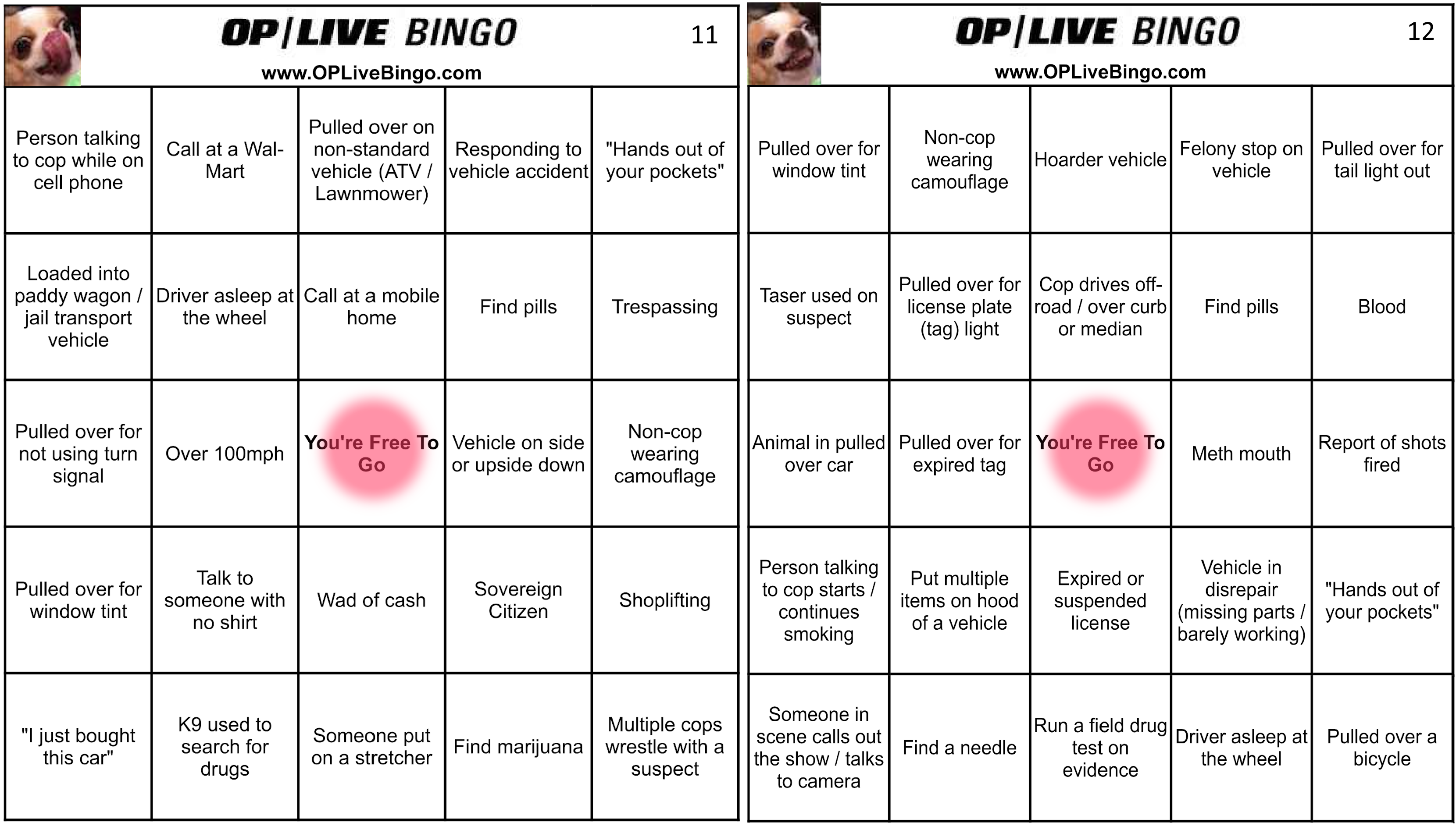 There are a couple duplicates tonight. There are animals in a pulled over car, like we saw last week. 11 & 12