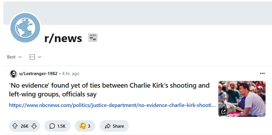 Misleading headline. They're talking about affiliation with left wing groups, which there is none so far. Doesn't mean he wasn't a leftist. Typical NBC. They're also predictably citing misleading statistics about right vs left political violence at the end of the article.