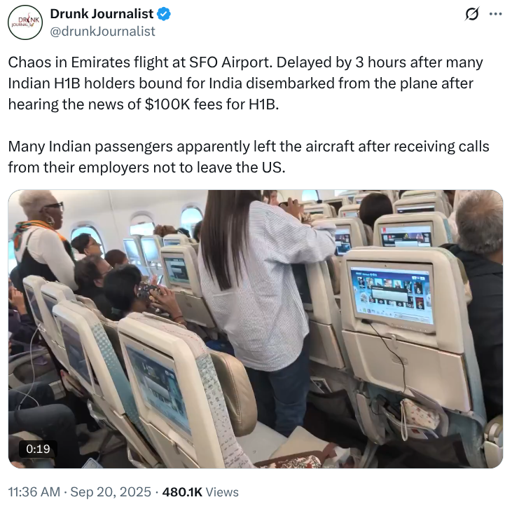 Jeets deplane from flight en masse, because they realize that if they leave the US they might not get back in.