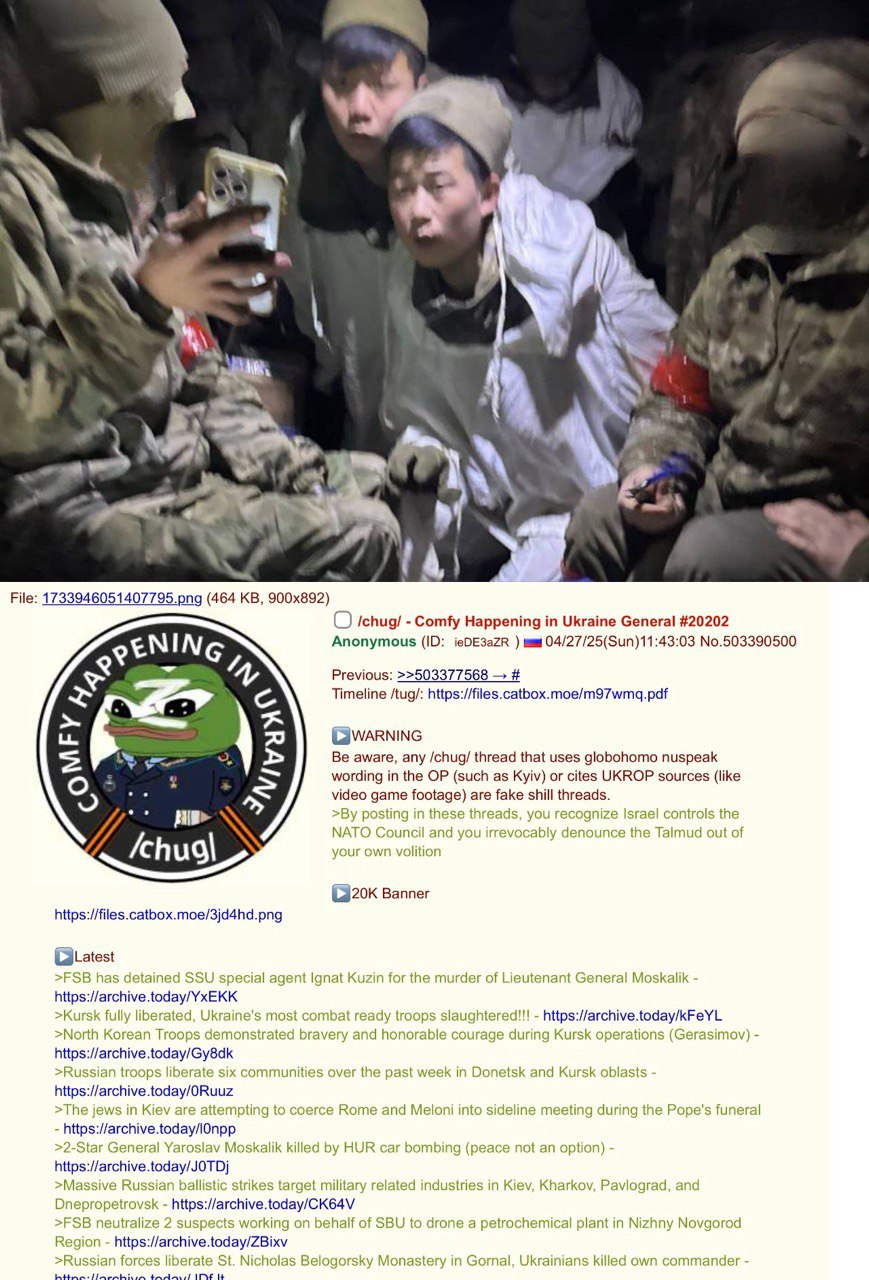 Be aware, any /chug/ thread that uses globohomo nuspeak wording in the OP (such as Kyiv) or cites UKROP sources (like video game footage) are fake shill threads.
