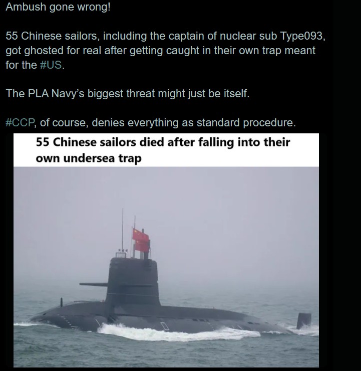 55 Chinese sailors, including the captain of nuclear sub Type093, got ghosted for real after getting caught in their own trap meant for the #US.