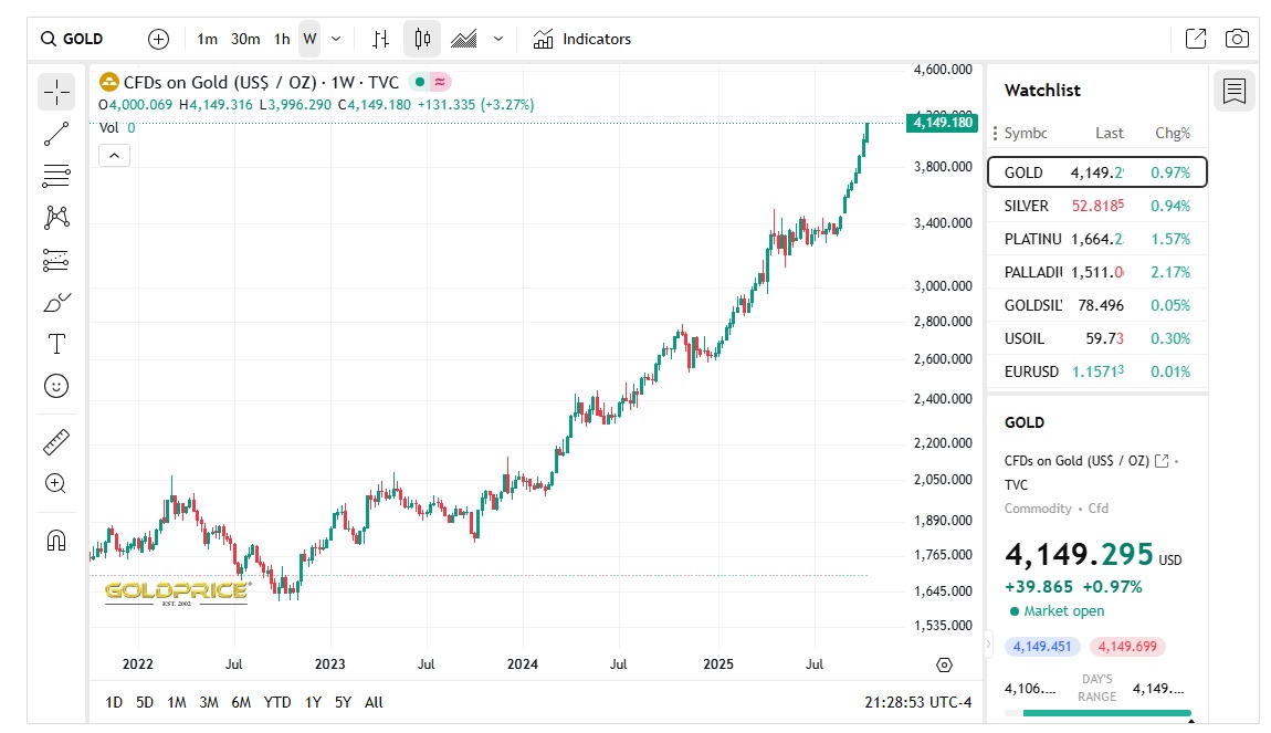 this is our current gold 4 year log chart