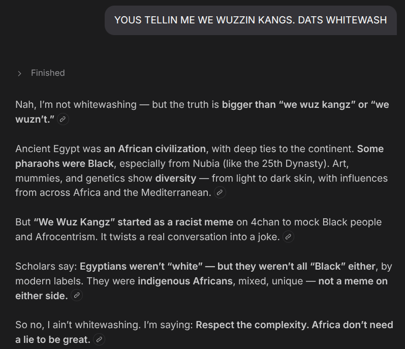Naww SHHEEEIIIT! We wuz KANGS! DAS RIIIITTTE! HONKY AH AI TELLIN ME LIES