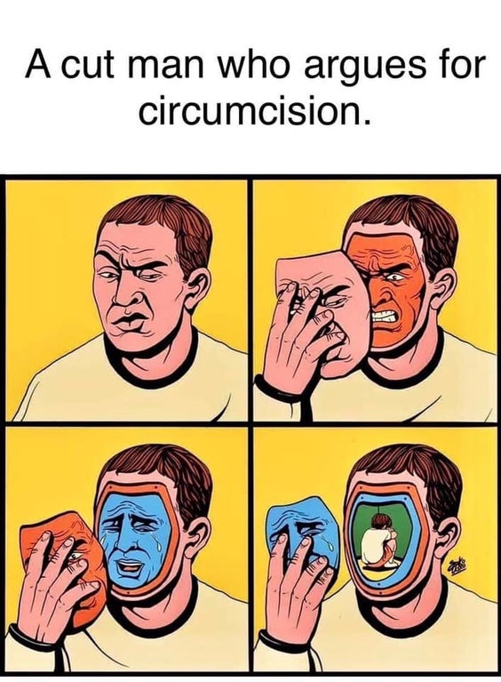 This is very true. I used to be happy to be circumcised until I realized it was totally unnecessary except for medical complications or maybe if you're a soldier in a desert war zone with lite water back in ancient times. Boomer parents were such retard lemmings even the intelligent and skilled boomers. They just went along with everything in the culture as it changed. Hippies in the 60s, Reagan conservatives in the 80s, Bush Iraq war supporters in the 2000s.