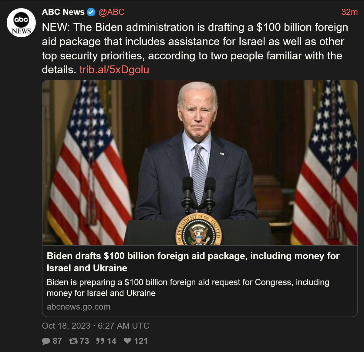 >as you're including the Bush-era aid guarantee