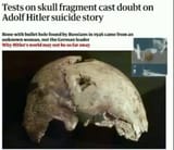 "Bone with bullet hole found by Russians in 1946 came from an unknown woman, not the German leader... DNA analyses performed on the bone, now held by the Russian State Archive in Moscow, have been processed at the genetics lab of the University of Connecticut. The results, broadcast in the US by a History Channel documentary, Hitler's Escape, astonished scientists."