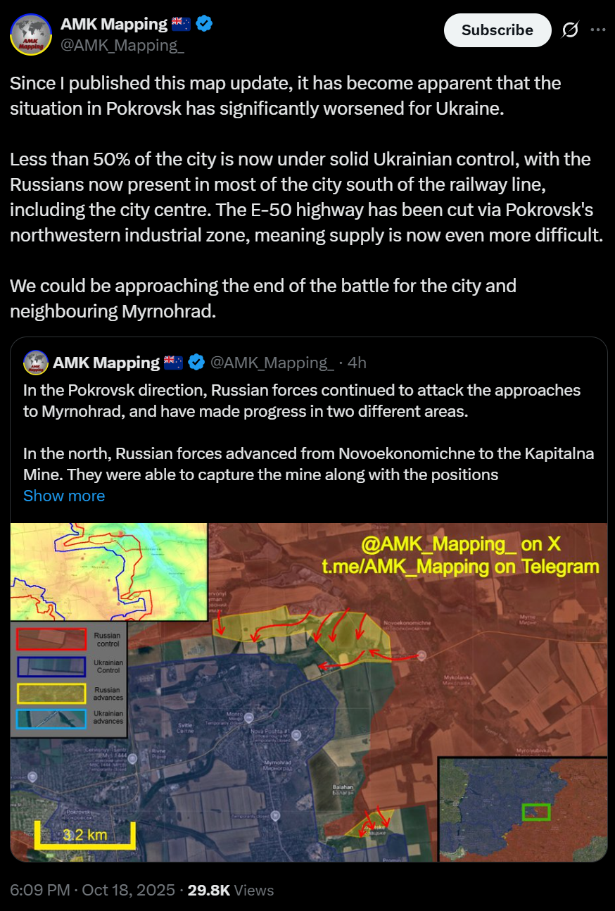 Pokrovsk gone. TODAY I WILL REMIND HIM AGAIN.
