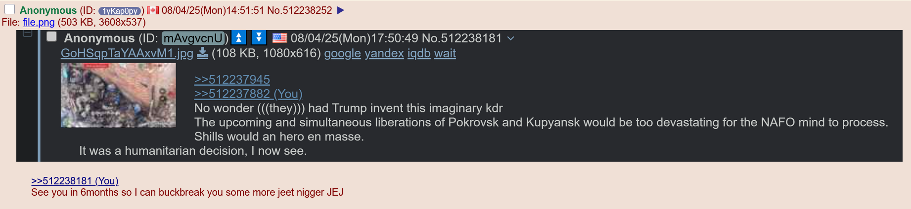 Be aware, any /chug/ thread that uses globohomo nuspeak wording in the OP (such as Kyiv) or cites UKROP sources (like video game footage) are fake shill threads.