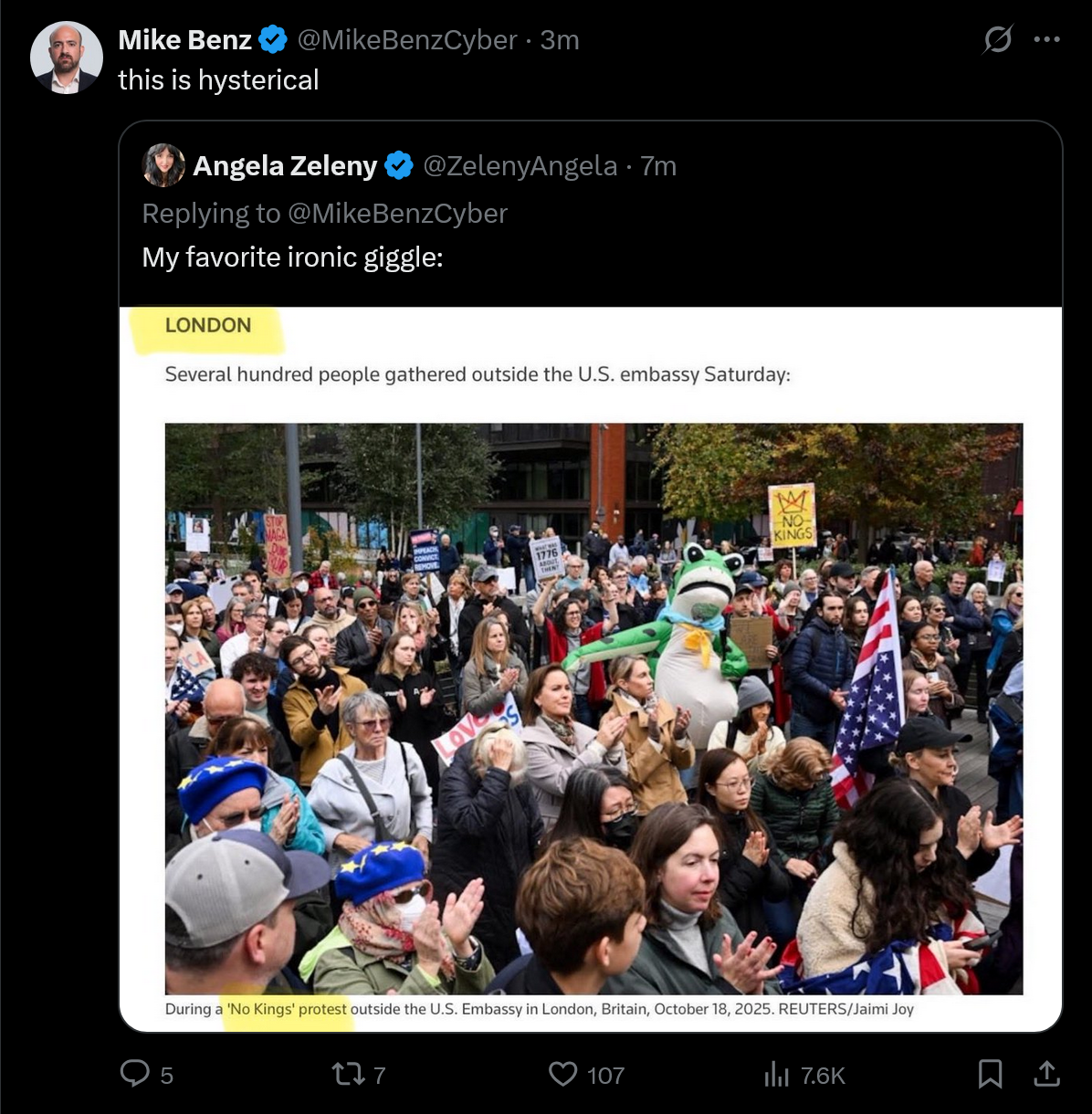 Itβs a no kings protest sign thatβs just got an Israel flag on it