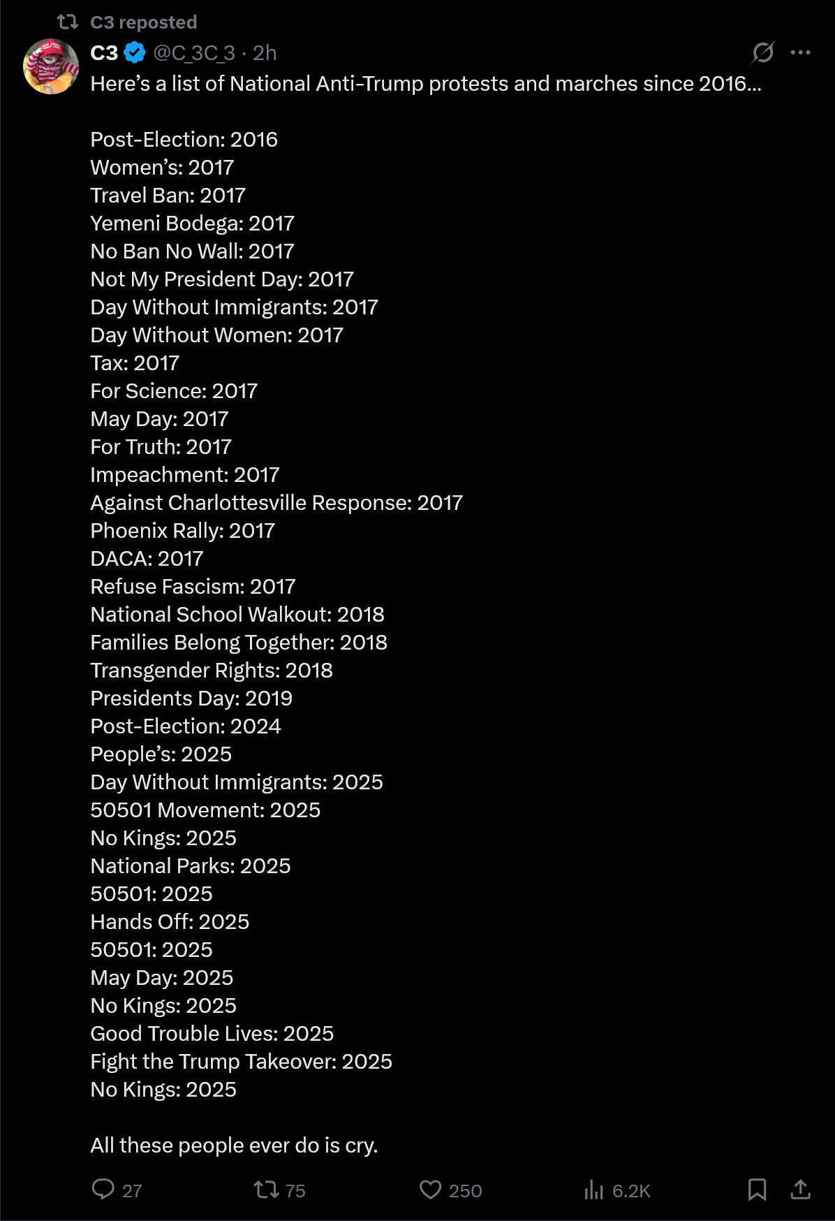 Imagine coping that all this is soros funded and not because Trump is a shit president and wannabe dictator. What fucking losers.