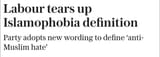 >Labour tears up Islamophobia definition