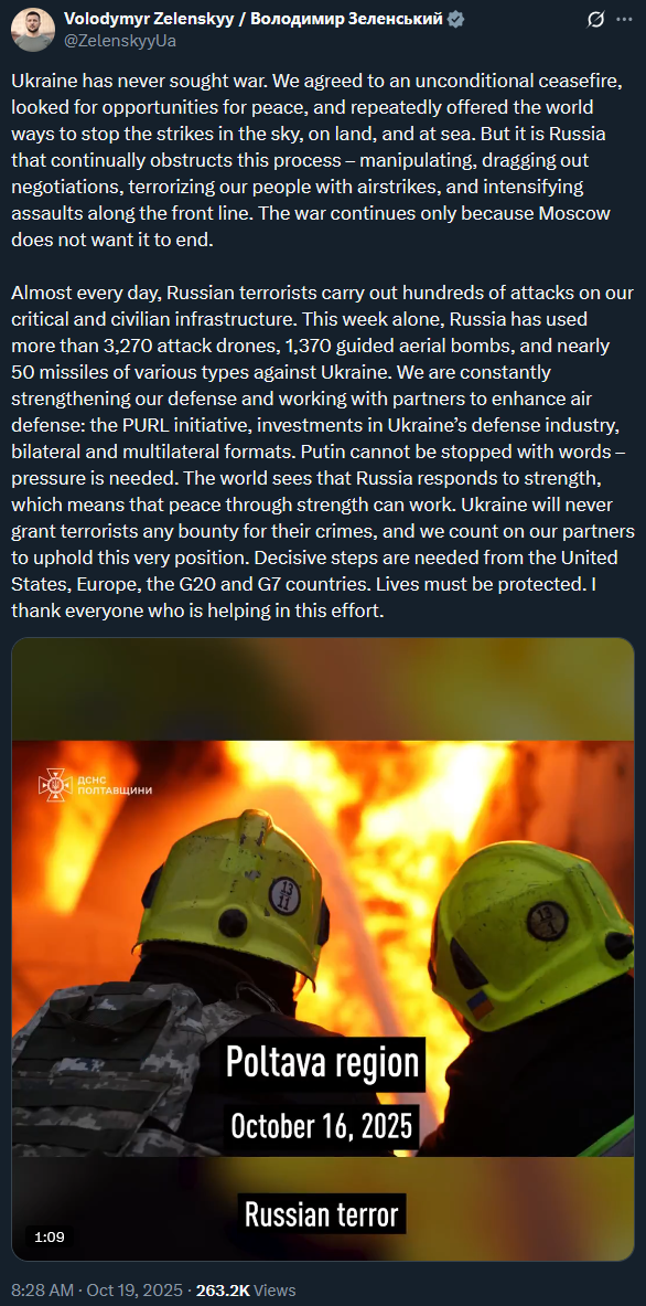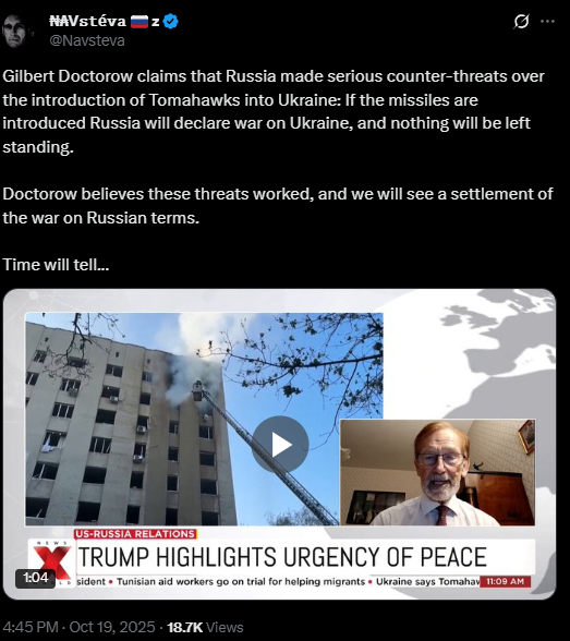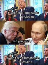 Right now it's staring game. Who blinks first? Unfortunately, Kremlin gave up too many times in the past, so everyone expect it again. And the Tomahawk manipulation has worked: Putin called Trump first and agreed to a new summit, furthermore, in a NATO country instead of Russia itself after Alaska according diplomatic conventions about symmetry.