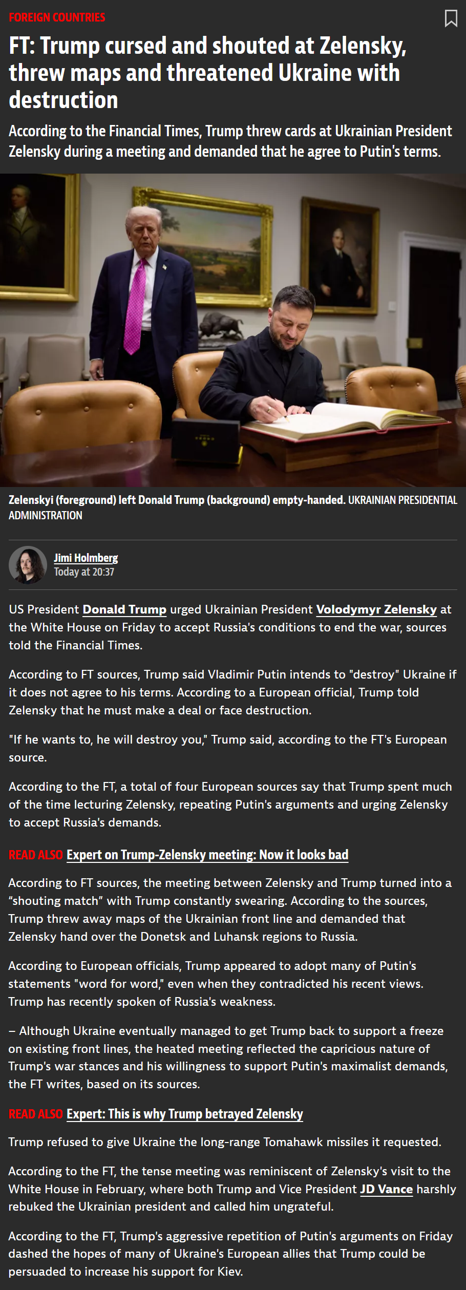 I trust Zelenskiy though. He didn't let us down for 3.5 years and it doesn't seem like he is going to do it now.