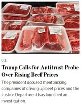 The ranchers are to blame also for not telling President Trump the other reasons that prices were so high. They probably thought he wouldnt bring in outside beef and they could price gouge us for the next 3 years and beyond. They probably didnt want to tell on their meat packing friends because of no snitching rules within organized crime groups. Did the ranchers cut a deal with brandons people to slaughter their own herds to create a scarcity of meat on purpose?