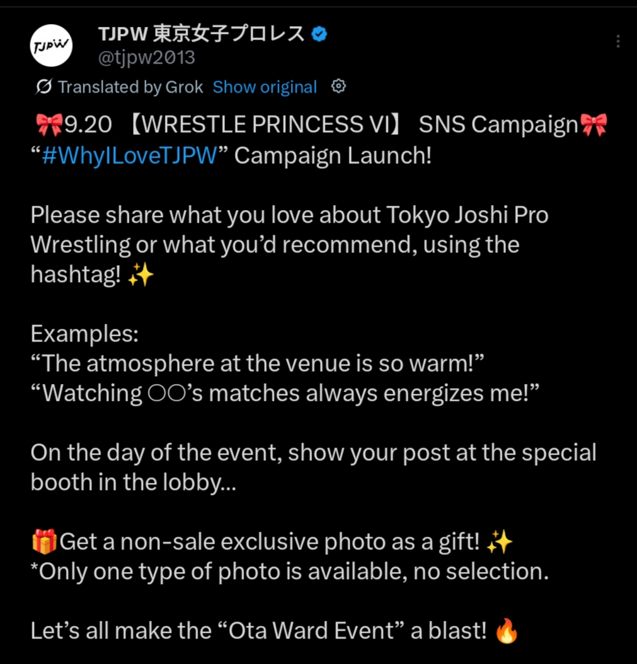 9.20 WRESTLE PRINCESS Ⅵ @ Ota Ward General Gymnasium, Tokyo (LIVE)[14:00 JST]