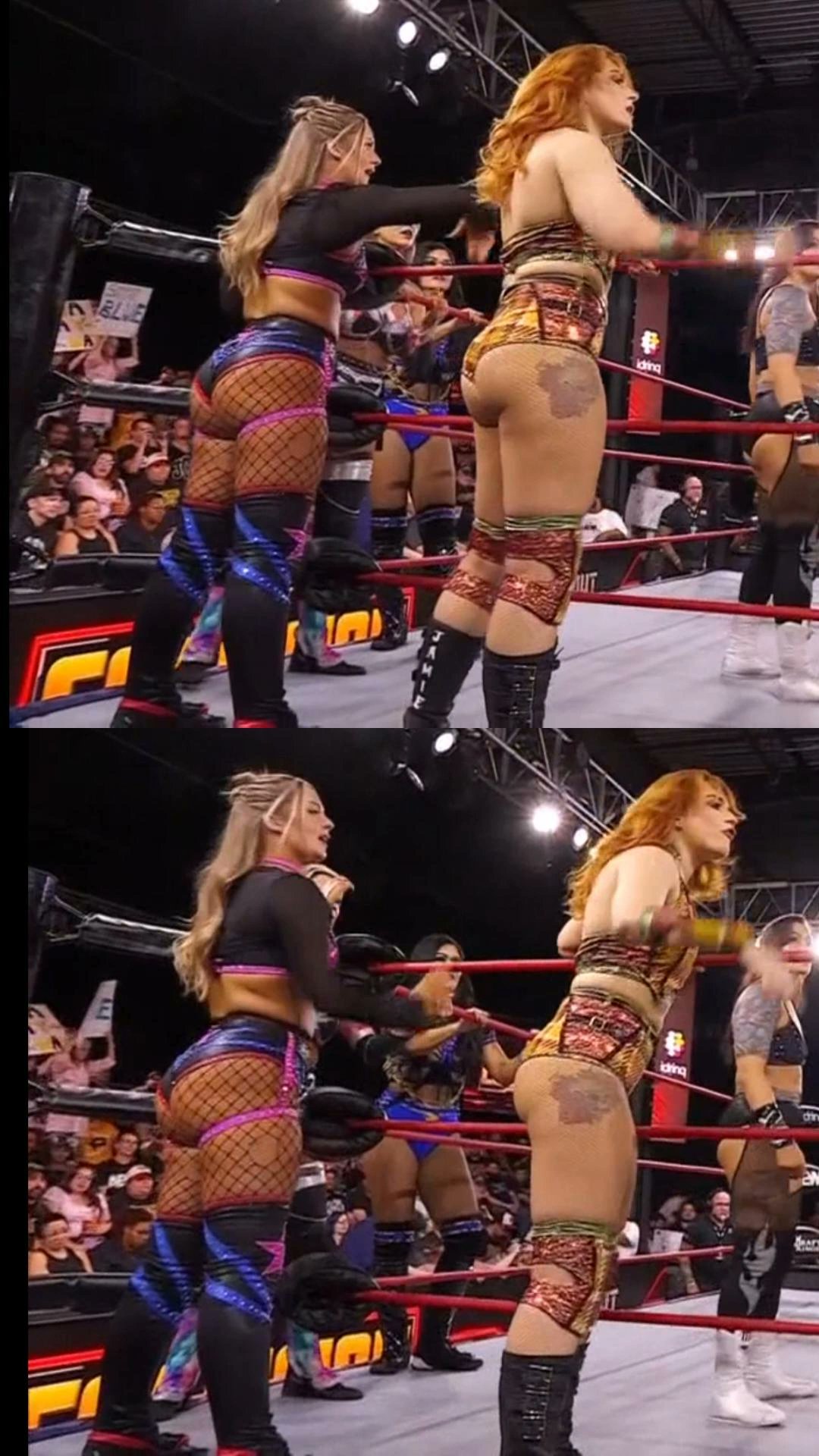 >Megan Bayne & Triangle of Madness (Thekla, Julia Hart and Skye Blue) defeated Kris Statlander, Harley Cameron, Jamie Hayter & TayJay (Tay Melo & Anna Jay) in a $500K 10-Woman Tag.