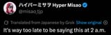 It's certainly the most amusing Miyu has been in literally years. Thank you, based leader.