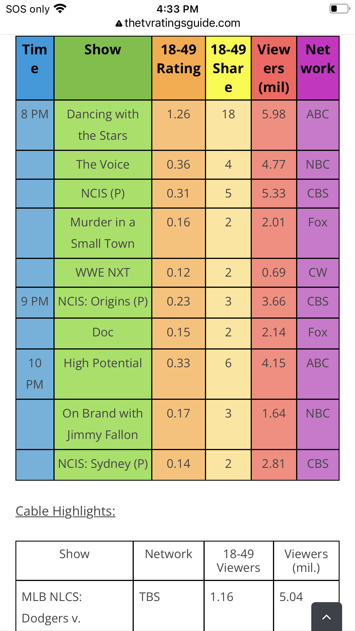 We finished last place on free cable