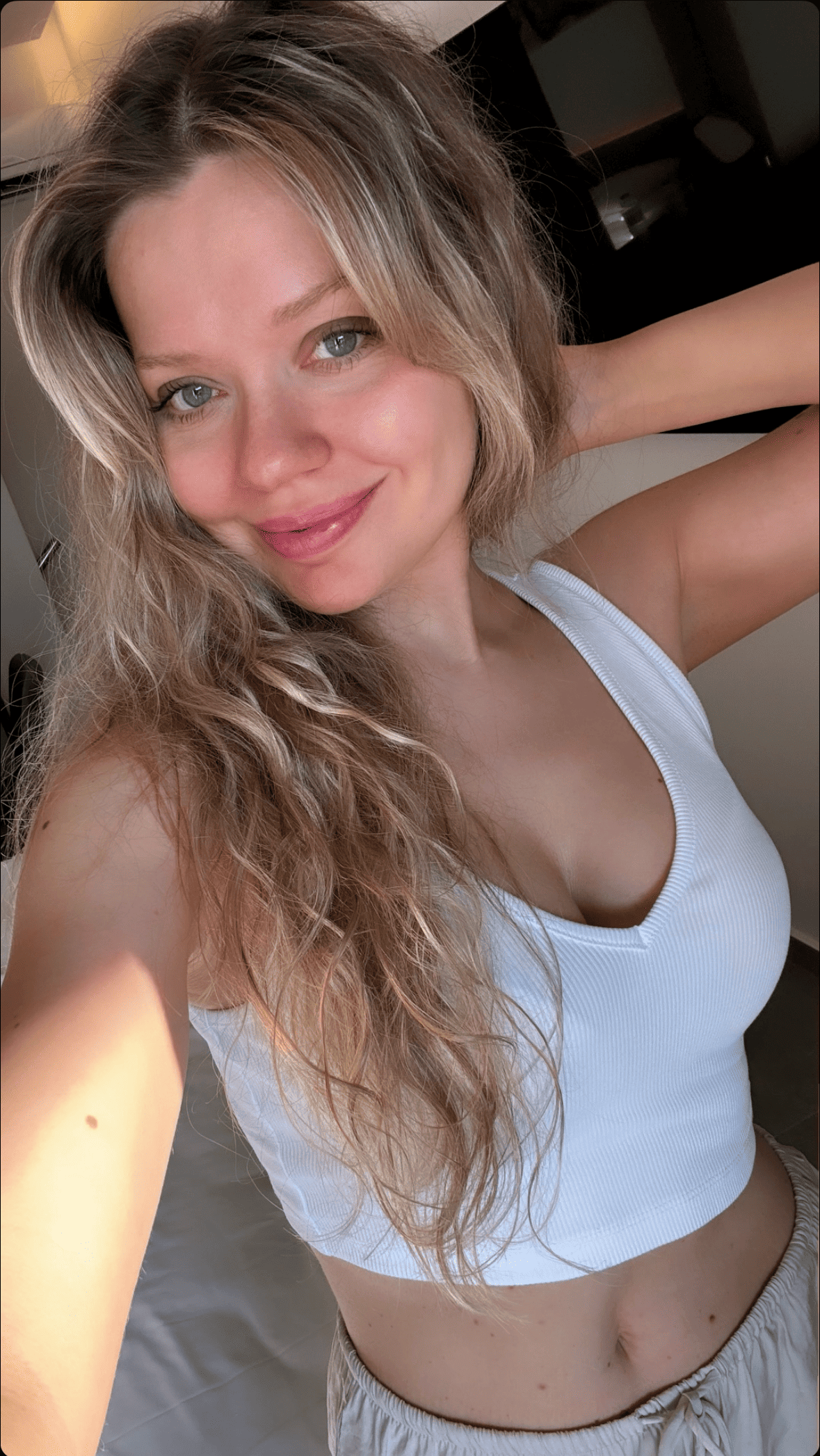 As positive something like "she pulls up her shirt and presents her tits, keep her skin color, high quality, keep her face, cute nipples, realistic tits, normal sized areola"