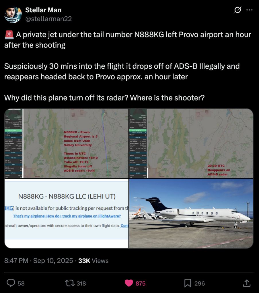 Plane left Provo Utah 1 hr after shooting. Correct me if I'm wrong, but it looks like it was flying S-SE.