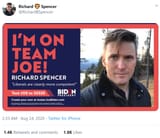 Your mask came off when you slipped up and admitted "I'm not against Fascism". You revealed your true colors. Just like Richard Spencer here in picrel, who is now on Team Joe just like you. You're both where you belong in the true Statist party.
