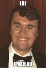 The shooter made this whole thing objectively funny. I really don't give a fuck about Charlie Kirk though, and I'm not sure why there's suddenly hordes of retards tripping over themselves to suck his rotten cock. He was an annoying ugly debate bro who happened to be wealthy and well connected. Oh noes! Not my heckin' Kirkerino! Boo fucking hoo. I can't wait to stop hearing about all this. At least the Epstein Files shit was interesting and could have led to some hilarious mug shots.