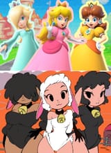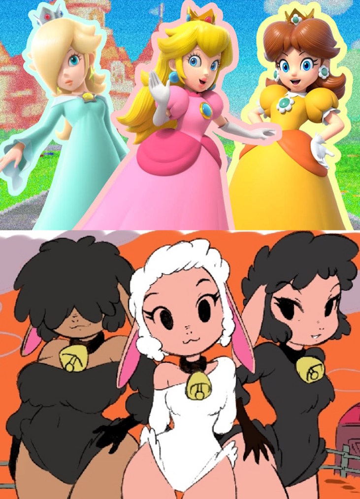 Requesting Leggy, Peggy and Barbara dress as Peach, Daisy, and Rosalina for Halloween. .