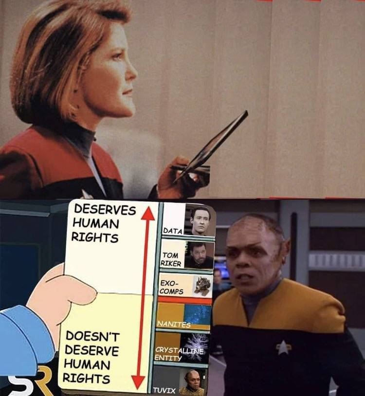 Yeah it's almost more interesting to talk about Voyager's fuckups behind the scenes than the stuff that happened in the show. For example, do you think Beltram told Jeri Ryan beforehand he was going to ask the producers for romantic scenes with her in order to get fired?