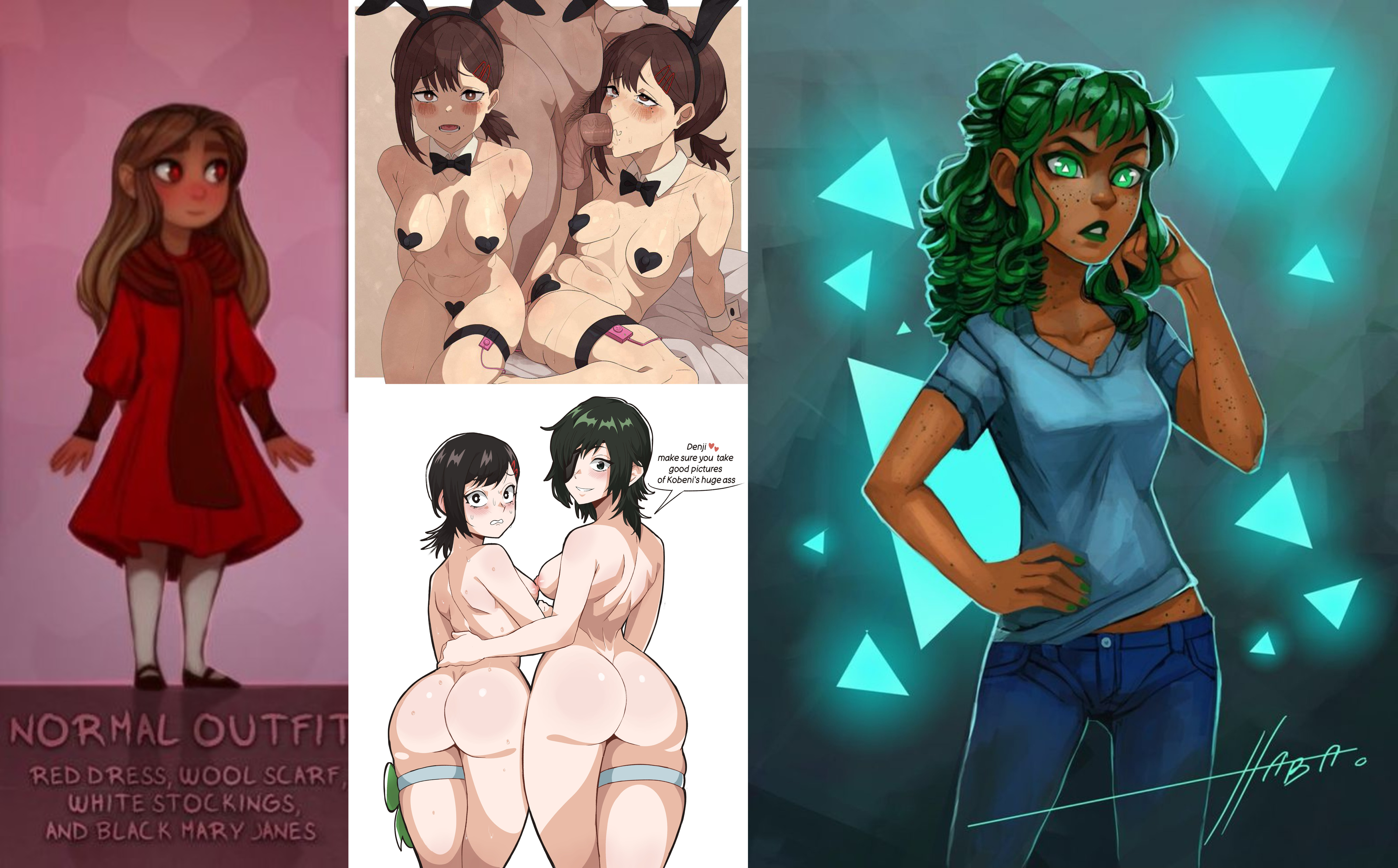 Requesting Ava and Maggie from Ava's Demon out trick or treating in skimpy bunny outfits, with them both looking back similar to the example provided. Have Ava be embarrassed/nervous, while Maggie is more obviously lustful and enjoying herself
