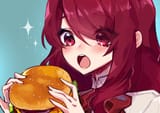 Eating borgers with Mitsuru