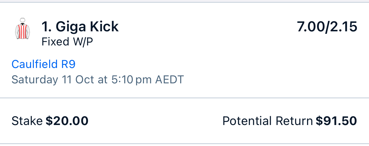also if you're wondering how Giga Kick has $13m in prize money, the cunt won the everest few years ago. Let's hope the cunt can find back it's form