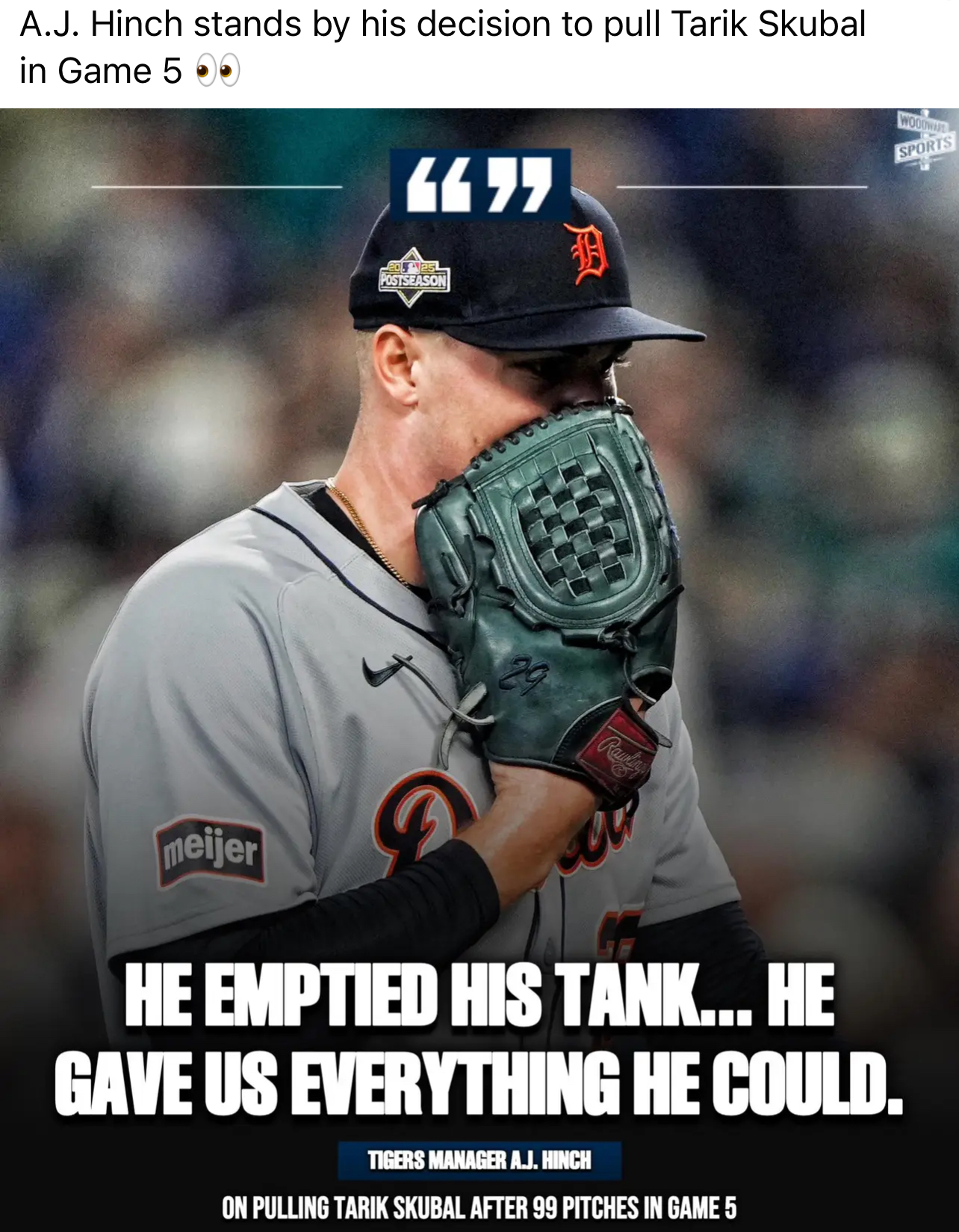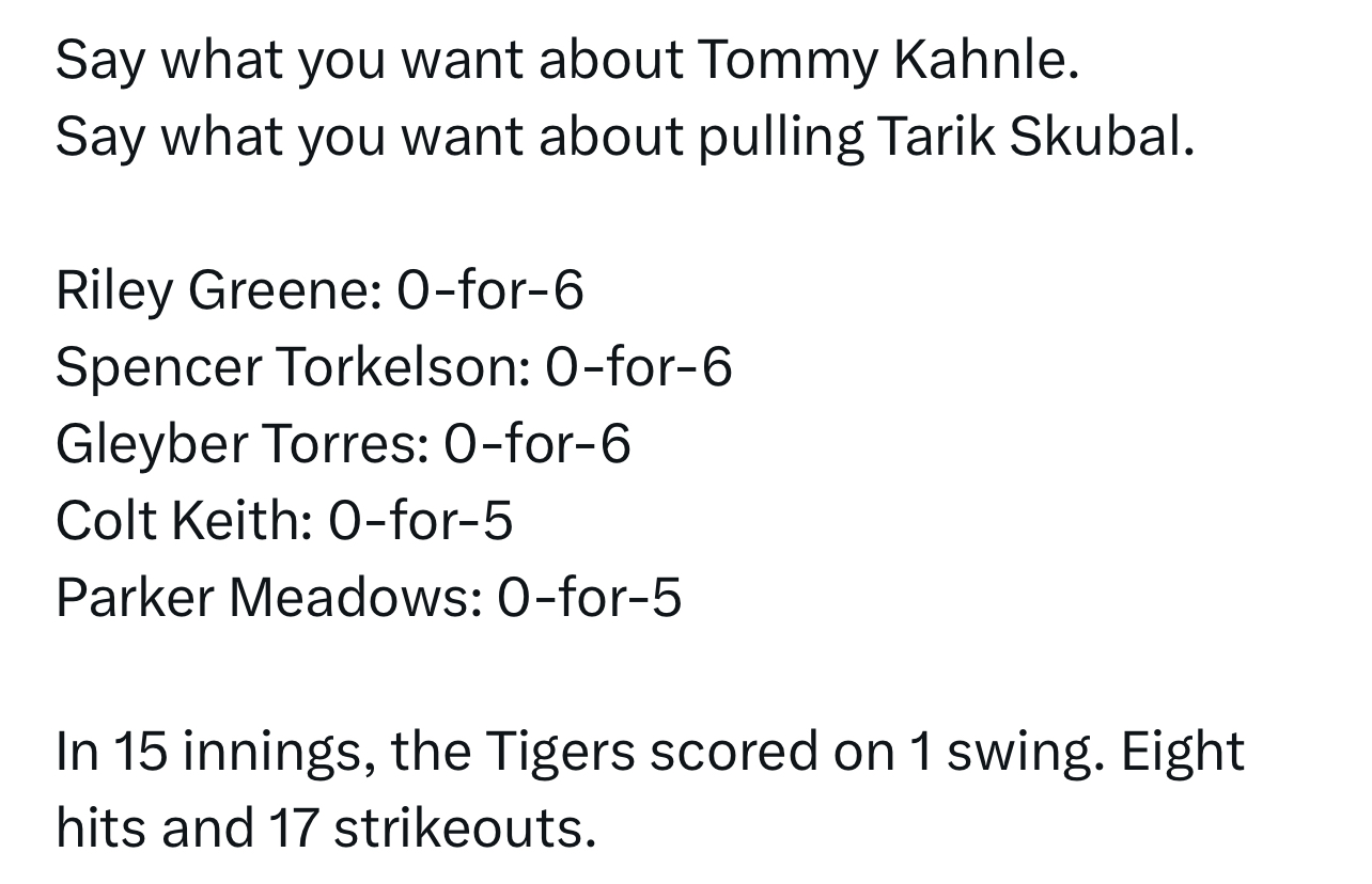 DET: Tarik Skubal struck out 13 over six innings of one-run baseball but didnβt get a decision in Game 5 against the Mariners on Friday