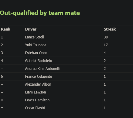Quali : VER NOR LEC RUS HAM PIA GIMI BEA